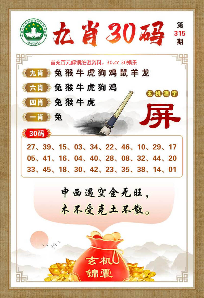 | 315期:九肖 | 虎牛猪羊鼠马鸡猴蛇 | 開:虎04 |